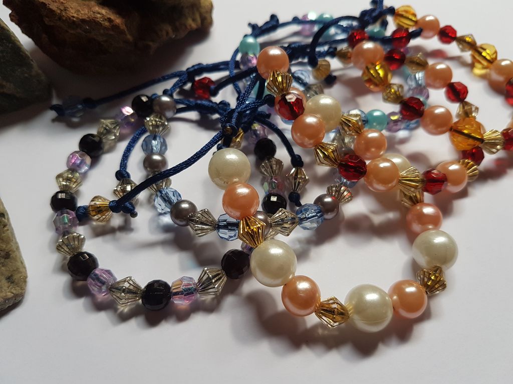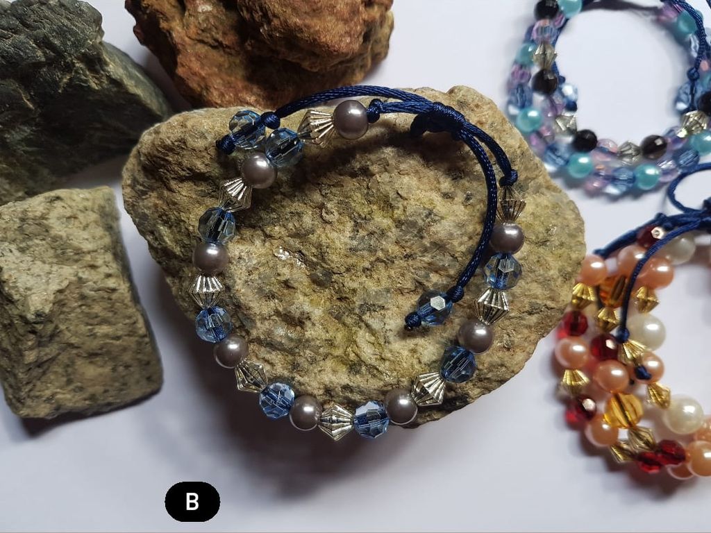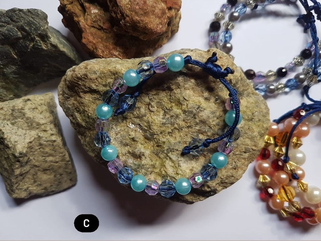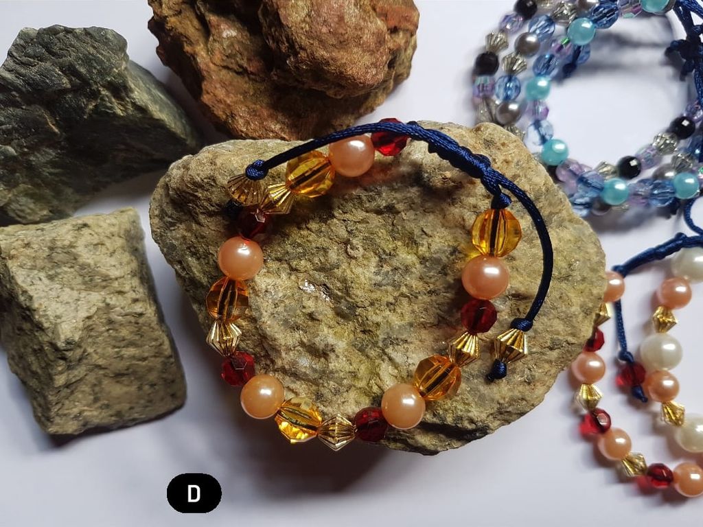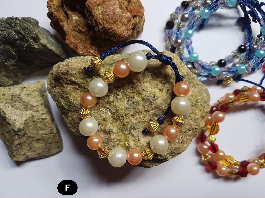 More of them! Accidentally water and fire theme for these. Satin thread and thick, and adjustable. Bead to bead diameter at 16.5cm to 17.5cm.